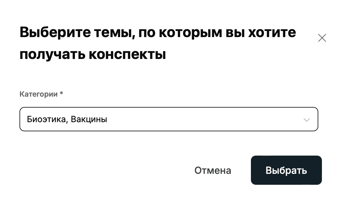 5. Готово! Опциально можно настроить нужные категории подкастов, чьи конспекты вы будете получать.